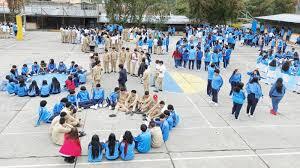 En una escuela de Quito, los estudiantes de sexto grado participaron en un simulacro de emergencia organizado por docentes y personal de seguridad.