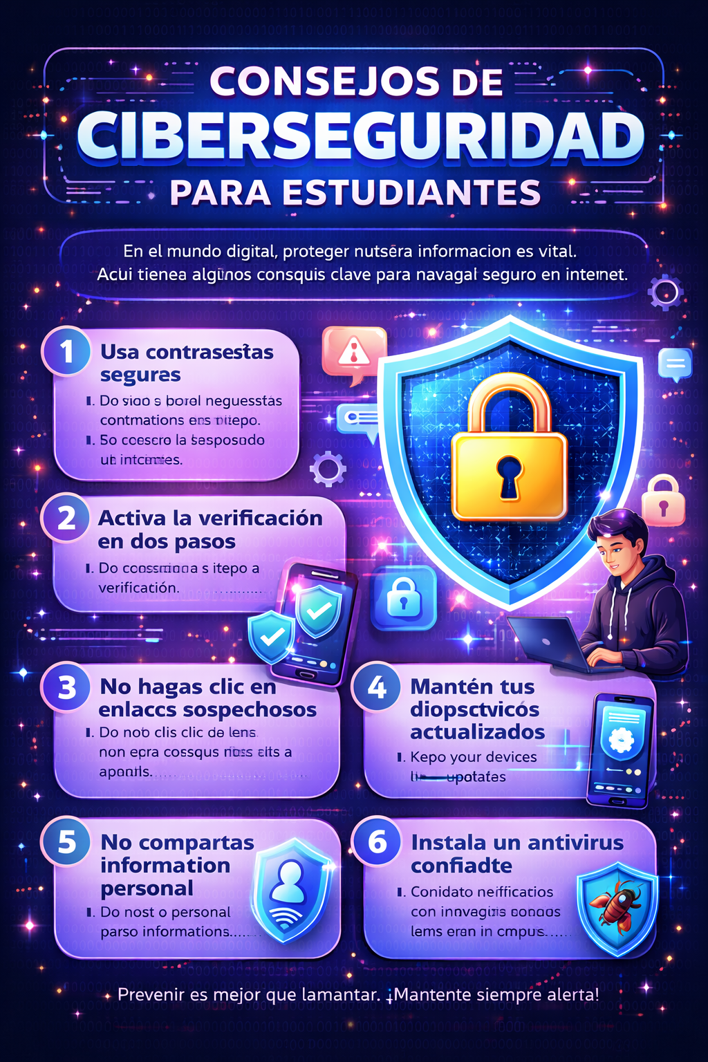Para los estudiantes de Informática, comprender la ciberseguridad es fundamental, ya que no solo se trata de aprender a programar o manejar sistemas, sino también de saber cómo prevenir amenazas digitales y actuar de manera responsable en el entorno virtual.