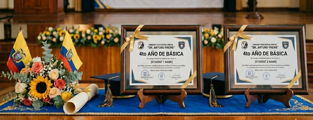La Unidad Educativa Fiscal Dr. Arturo Freire celebró una jornada especial al realizar la entrega de diplomas a los estudiantes más destacados de 4° de Educación General Básica durante el trimestre. El acto contó con la presencia de autoridades, docentes y compañeros, quienes aplaudieron el compromiso y dedicación demostrados en el aula.